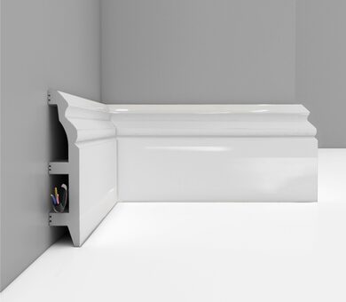 Плинтус — небольшая деталь, которая завершает любой ремонт. Он закрывает технологический зазор между стеной и полом, надежно фиксирует края напольного покрытия, особенно это актуально для ламината, кварцвинила и линолеума. Помимо этого, внутри многих моделей предусмотрен кабель-канал: удобное решение для скрытой прокладки интернет-кабеля, телевизионного провода или кабеля акустики.