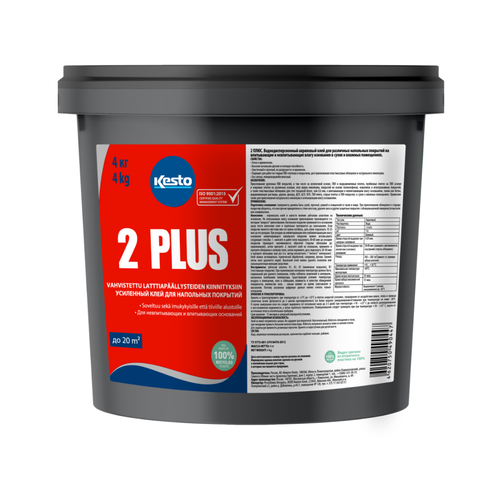 Клей для гибких напольных покрытий Клей Kesto 2 Plus 4 кг по выгодным ценам можно купить в нашем интернет-магазине BSpol. Возможна как доставка, так и самовывоз. Доставку осуществляем по всем регионам России. Не устроила цена? Звоните +7(495) 966-13-50 или пишите на почту zakaz@bspol.ru, сделаем выгодное предложение!