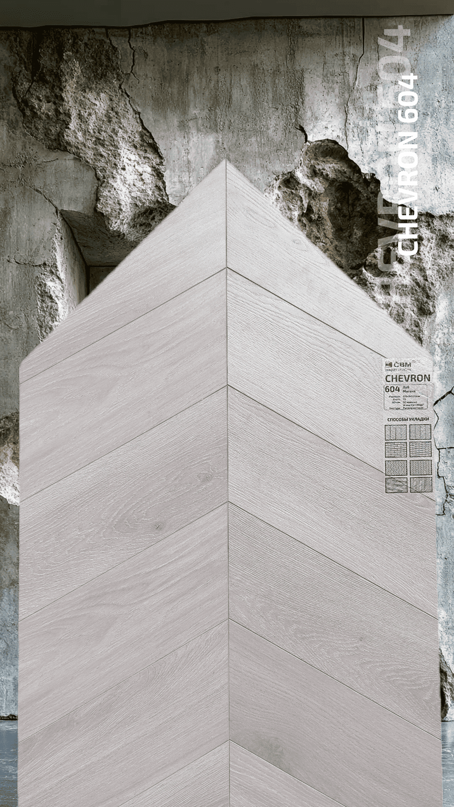 Ламинат CBM Chevron 604 Дуб Магена 33 класса, толщиной 12 мм по выгодной цене можно купить в нашем интернет-магазине BSpol. Наша компания предлагает полный спектр услуг: замер, расчет, доставку и монтаж. Доставку осуществляем по всем регионам России. Не устроила цена? Звоните +7(495) 966-13-50 или пишите на почту zakaz@bspol.ru, сделаем выгодное предложение!