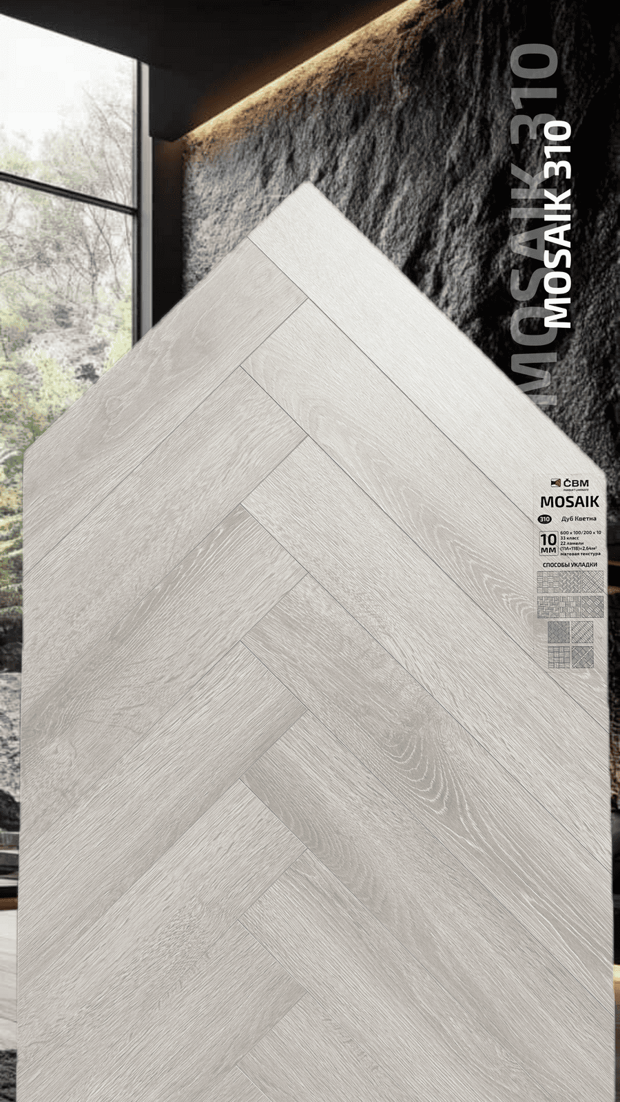 Ламинат CBM Mosaik 310 Дуб Кветна 33 класса, толщиной 10 мм по выгодной цене можно купить в нашем интернет-магазине BSpol. Наша компания предлагает полный спектр услуг: замер, расчет, доставку и монтаж. Доставку осуществляем по всем регионам России. Не устроила цена? Звоните +7(495) 966-13-50 или пишите на почту zakaz@bspol.ru, сделаем выгодное предложение!