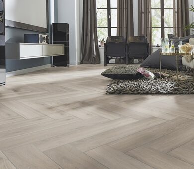 Цена ламината Kronotex Herringbone 3773 Серебряный дуб полностью оправдана высоким качеством изготовления материала и долгим сроком службы. Интересные уникальные декоры сделают вашу квартиру стильной и уютной. Размер половицы 665×133 мм. В одной упаковке находится 14 досок, которых достаточно для покрытия 1,238 м2. Половица обладает антистатическим покрытием и нескользкой поверхностью.
