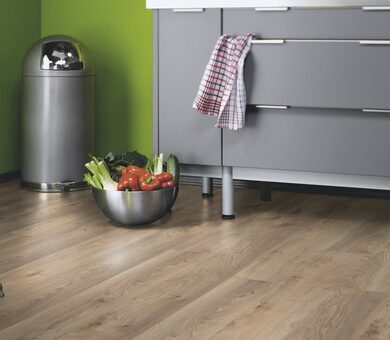 Цена ламината Kronotex Mammut D3669 Дуб Макро бежевый полностью оправдана высоким качеством изготовления материала и долгим сроком службы. Интересные уникальные декоры сделают вашу квартиру стильной и уютной. Размер половицы 1375×188 мм. В одной упаковке находится 4 досок, которых достаточно для покрытия 1,387 м2. Половица обладает антистатическим покрытием и нескользкой поверхностью.