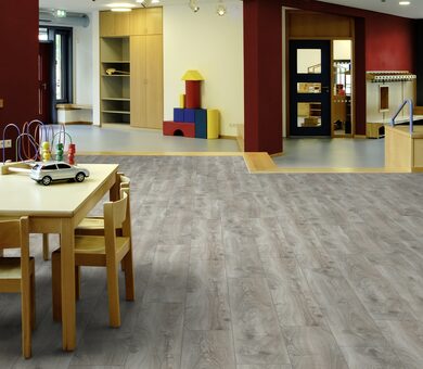 Ламинат Kronotex Mammut D4797 Дуб горный серебристый можно использовать и для жилой комнаты или прихожей, и для офиса или магазина. Это ламинированное покрытие 33 класса, надёжно противостоящее механическим нагрузкам за счёт толщины 12 мм, а истиранию и царапинам с помощью ламинирующего слоя с показателем табер-теста AC5. Отзывы о ламината Кронотекс приходят практически из всех стран Европы и многих других стран мира. Kronotex — марка интернациональная, имеющая заводы на территории семи государств. Важно, что контроль за качеством осуществляется на всех стадиях производства. Кронотекс использует древесную плиту HDF, произведённую на собственных заводах.