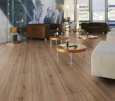 Купить Kronotex Robusto можно и для жилой комнаты или прихожей, и для офиса или магазина. Это ламинированное покрытие 33 класса, надёжно противостоящее механическим нагрузкам за счёт толщины 12 мм, а истиранию и царапинам с помощью ламинирующего слоя с показателем табер-теста AC5. Отзывы о Kronotex Robusto D3074 Дуб Саверн приходят практически из всех стран Европы и многих других стран мира. Кронотекс — марка интернациональная, имеющая заводы на территории семи государств. Важно, что контроль за качеством осуществляется на всех стадиях производства. Кронотекс использует древесную плиту HDF, произведённую на собственных заводах.