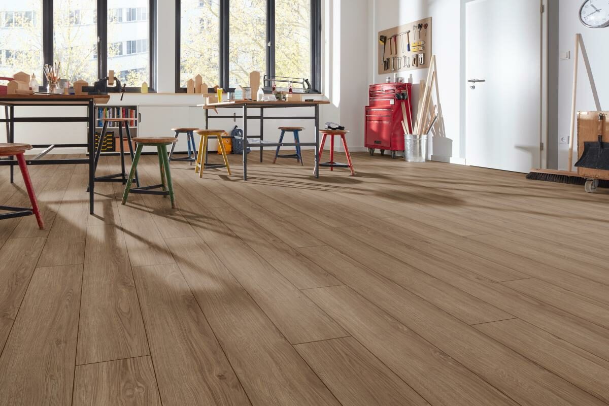 Цена ламината Kronotex Robusto D40522 Дуб Опаловый кофейный полностью оправдана высоким качеством изготовления материала и долгим сроком службы. Интересные уникальные декоры сделают вашу квартиру стильной и уютной. Размер половицы 1375×188 мм. В одной упаковке находится 5 досок, которых достаточно для покрытия 1.293 м2. Половица обладает антистатическим покрытием и нескользкой поверхностью.