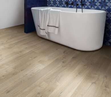 Водостойкость с технологией HydroSeal: ламинат не боится влаги благодаря специальному покрытию, которое предотвращает проникновение воды в стыки. Вода собирается каплями, которые легко вытираются.