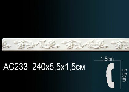 Молдинг с рисунком Перфект из полиуретана AC233 можно купить в нашем магазине BSpol с доставкой или самовывозом. Доставка осуществляем по РФ. Не устроила цена? Звоните +7(495) 966-13-50 или пишите на почту zakaz@bspol.ru, изменим предложением на более выгодное!