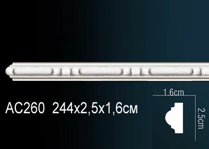 Молдинг с рисунком Перфект из полиуретана AC260 можно купить в нашем магазине BSpol с доставкой или самовывозом. Доставка осуществляем по РФ. Не устроила цена? Звоните +7(495) 966-13-50 или пишите на почту zakaz@bspol.ru, изменим предложением на более выгодное!