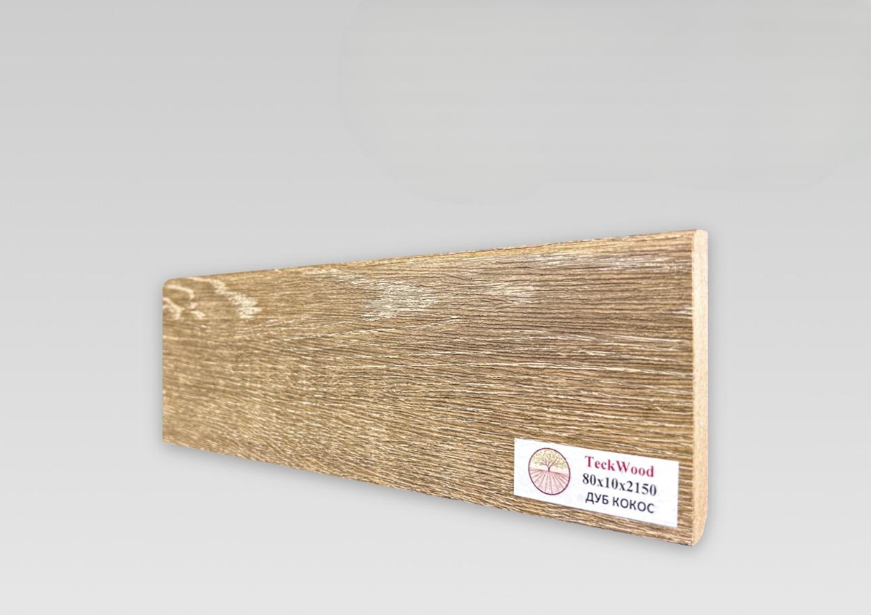 Напольный плинтус из МДФ Teckwood Цветной 80х10х2150 мм Дуб Кокос по выгодной цене можно купить в нашем интернет-магазине BSpol. Наша компания предлагает полный спектр услуг: замер, расчет, доставку и монтаж. Доставку осуществляем по всем регионам России. Не устроила цена? Звоните +7(495) 966-13-50 или пишите на почту zakaz@bspol.ru, сделаем выгодное предложение!