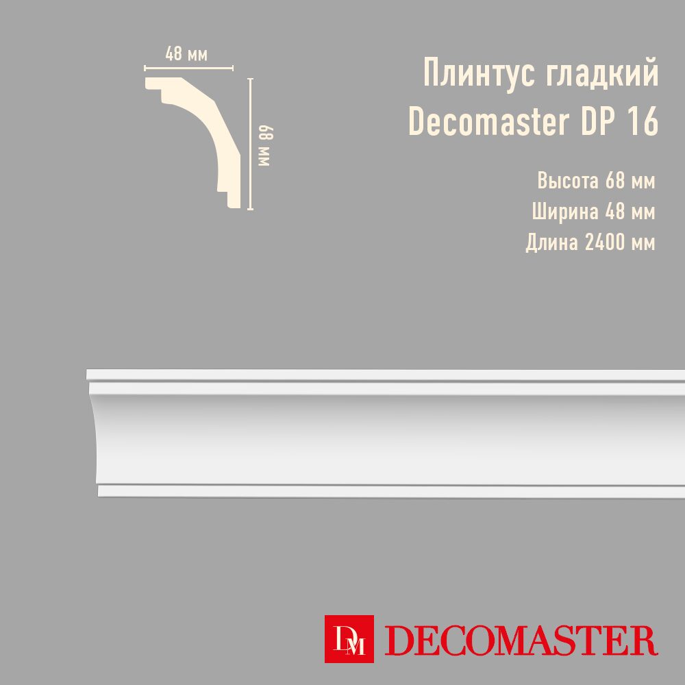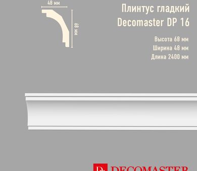 Плинтус потолочный гладкий DP-16A Decomaster из полиуретана высокой плотности можете купить в нашем магазине отделочных материалов bspol.ru с бесплатной доставкой по Москве и области! Нужна покраска и монтаж потолочного плинтуса Decomaster? Закажите у нас по отличной цене!