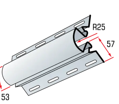 Угловая радиусная планка - представляет собой наружный угол, только закругленный, устанавливается на стыке двух стен (используется как вместе с наличником широким, образуя составной угол к сайдингу, так и по отдельности).